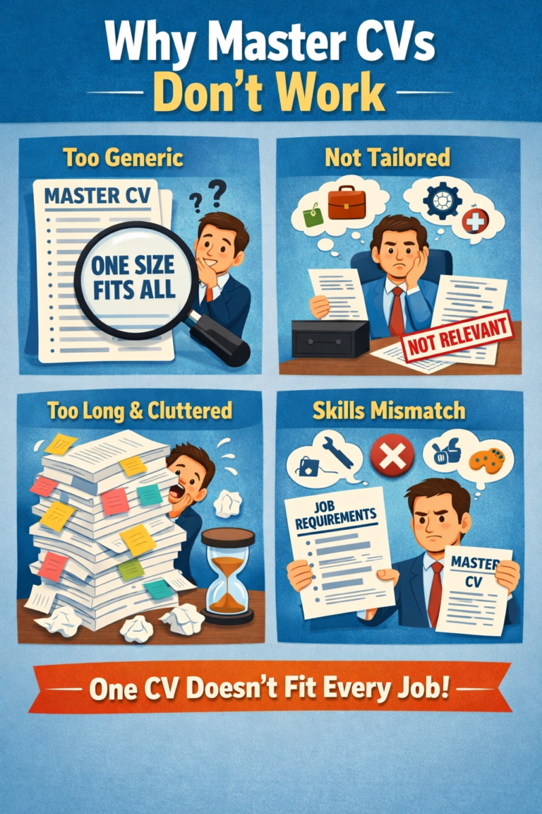 1Using a generic CV for every applicationATS scores your match to that specific job description. A generic CV scores low on every oneTailor keywords and summary for each role